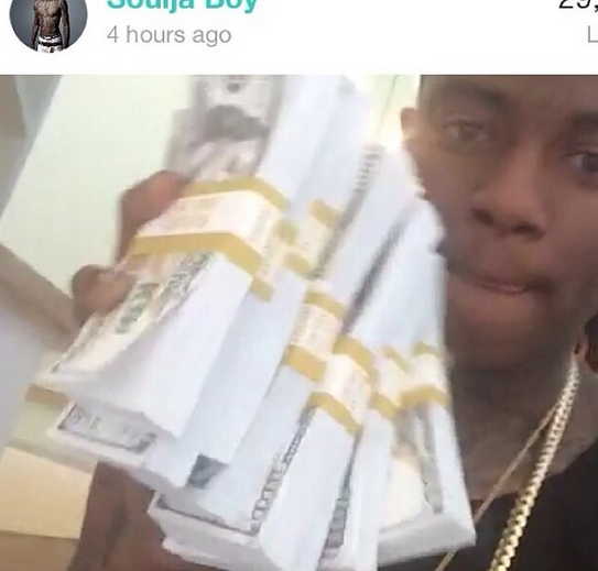 I don’t know how the fuck Soulja thought people weren’t going to notice that those weren’t real bills. They’re not even close to the right color and theres a bill peeling up so you can SEE THE FUCKING BLANK PAPER.